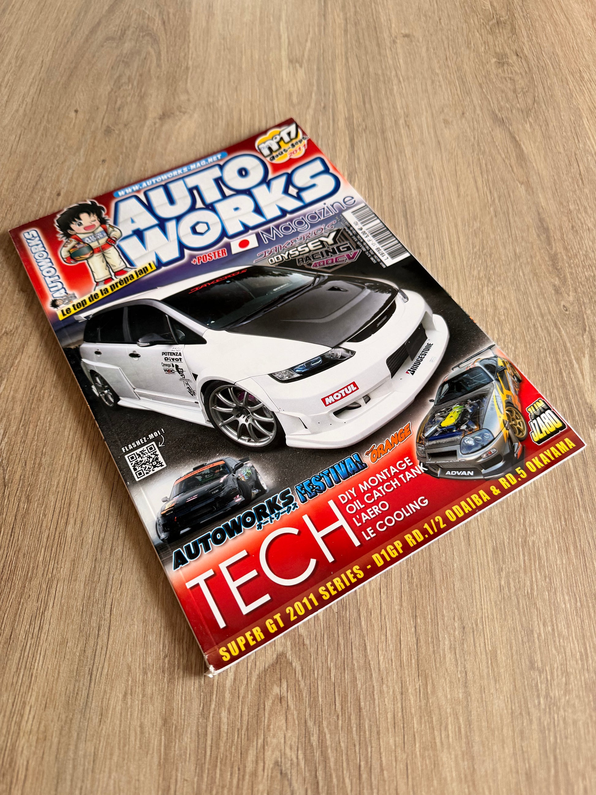 Aout Septembre 2011, Autoworks Magazine numéro 17 du bimestriel français dédié aux voitures japonaises modifiées. Chaque édition offrait des actualités, des essais, des reportages sur des garages et des événements, des articles sur des véhicules tunés par des professionnels ou des amateurs, une section historique, des articles techniques, un tutoriel DIY, ainsi que divers sujets liés à la passion pour le Japon. Tout au long de son existence, il a été suivi par une communauté de lecteurs fidèles. Numéro 17 sur les 61 numéros nous vous avions réservé bien des surprise mais surtout un récap de notre pire /meilleur weekend sur le fameux Autoworks Festival !